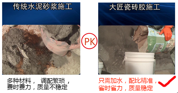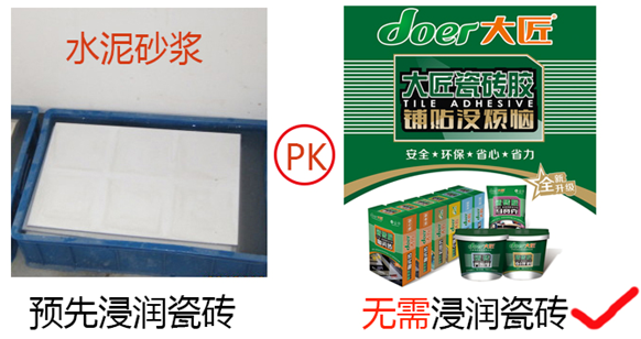 从上述瓷砖铺贴材料产品性能,施工性能对比,显而易见:PK水泥砂浆,瓷砖胶胜出无疑。