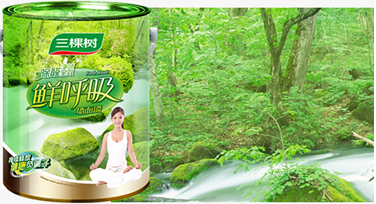 三棵树鲜呼吸除醛净味全效墙面漆能有效降低室内游离甲醛污染,更大幅度减弱产品残存气味,同时,该款产品还能有效释放负离子,净化空气,另具有漆膜细腻、强耐擦洗、防霉抗碱、手感细腻柔滑等强效功能。