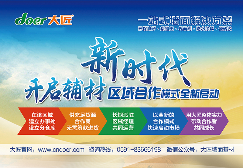 值得惊喜一提的是,全国首家亦是唯一一家全面覆盖涂料基材系统(环保腻子+固墙抗裂)、墙纸基材系统、瓷砖基材系统、防水、新砌墙抗裂系统、抗裂砂浆等全系列墙面基材的大匠公司,不仅研发、生产和销售产品,还提供配套的一站式墙面解决方案。“好墙面,大匠在里面”,“墙面问题找大匠”的口碑已在涂装市场深入人心。因此,在产品和服务方面,大匠墙面基材的经销合作伙伴毫无后顾之忧。