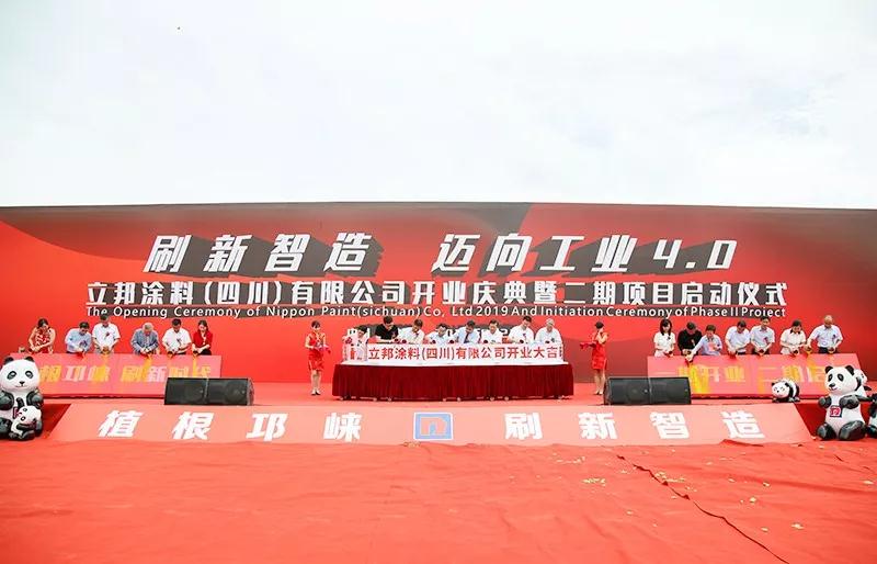 2019年6月28日,立邦涂料(四川)有限公司开业庆典暨二期项目启动仪式在四川省天府新区邛崃产业园区隆重举行。邛崃市人大常委会主任刘忠、邛崃市政协主席欧俊波、邛崃市委常委陈华、邛崃市政府副市长杨敏等政府领导,立邦中国建筑涂料事业群生产供应链高级副总裁邢荣华、立邦中国西区总经理兼立邦涂料(成都)有限公司总经理邱洪良,立邦中国建筑涂料事业群DIY事业部西区销售公司副总经理黄生涛、工程涂料事业部西部大区销售副总经理邹淑娟、立邦中国建筑涂料事业群生产供应链高级副总裁特别助理杨敏等立邦集团领导出席开业庆典仪式。