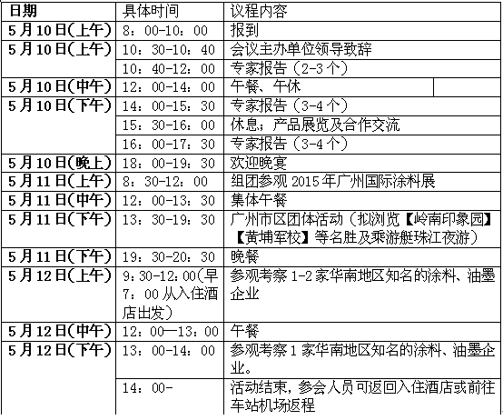 九、参会对象:国内外涂料、油墨和胶粘剂产业中的制造商、原材料及设备供应商﹑制品加工企业的总经理、技术研发总监、工程经理、技术经理、设计经理、产品经理、采购经理、高级技术人员等;以及来自科研院校、行业协会的高级专家等。