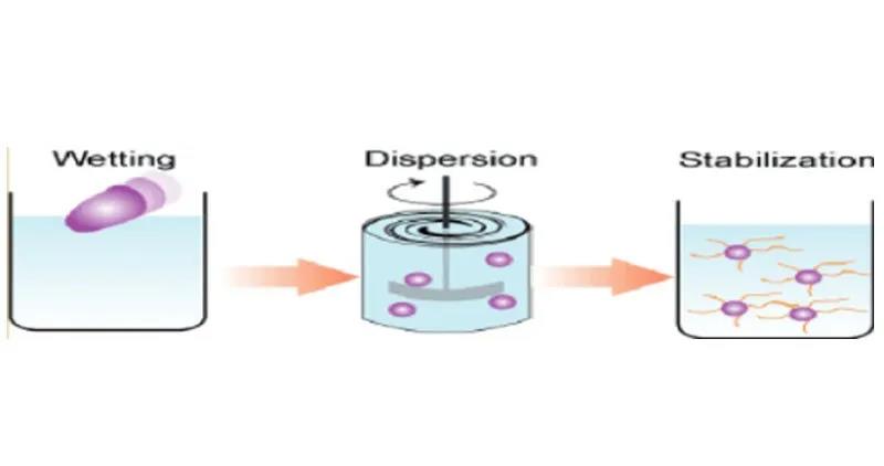 固体粒子在介质中的分散过程一般分为三个阶段: