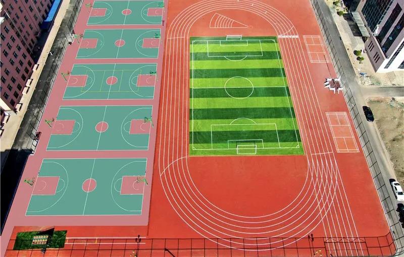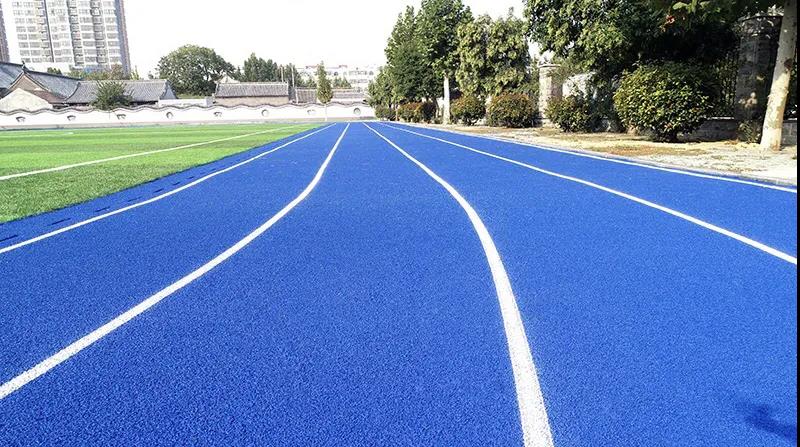 d、耐候性强:复合型塑胶跑道表面胶粒,能够抵抗空气中的紫外线、臭氧等,使用寿命长。为人们带来更为健康舒适的运动空间。