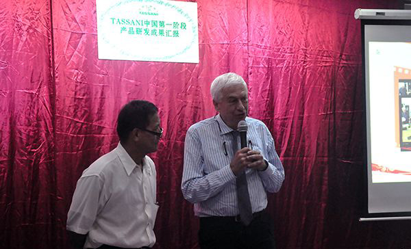 图为意大利TASSANI首席技术官Mr.Saia Stefano做产品研发成果介绍