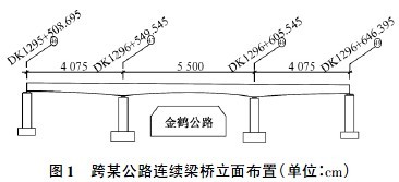 某铁路大桥跨越地方公路,采用( 40 + 56 + 40) m连续梁桥一次跨越( 见图1) ,与某公路斜交角76°,两主墩墩号分别为1 号和2 号,采用钻孔灌注桩基础,每个主墩为10 根直径1. 5m 钻孔桩,边墩为10 根直径1. 25m 钻孔桩; 上部主梁结构采用挂篮悬臂浇筑法施工。