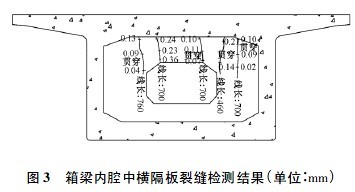 根据现场检测结果,中横隔板处裂缝深度为贯通裂缝。如图3 所示