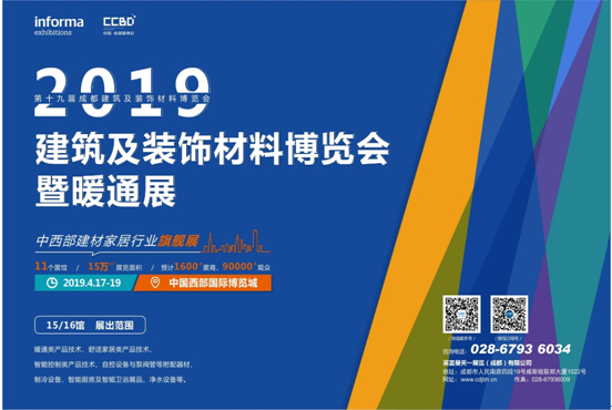 2019年4月17-19日,备受业界关注的2019成都建博会暨成都暖通主题展将在中国西部国际博览中心隆重举办,浙江省店口镇人民政府下属店口水暖产业联盟将组织众企组团赴成都参展,展出面积近千平米,并以整体展示区+特装展位的方式向中西部的行业人士展示、推介店口镇水暖产品。