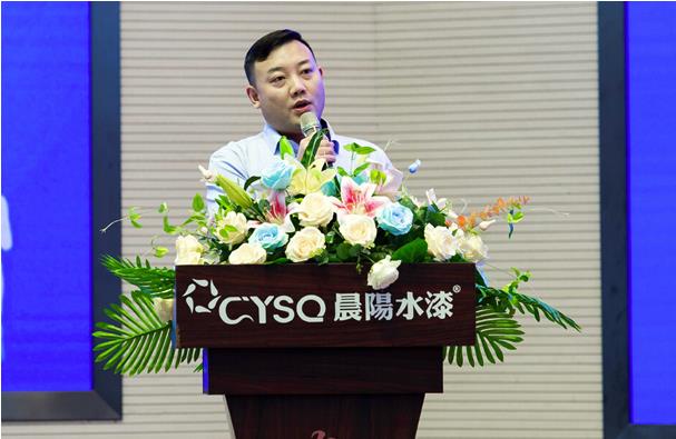 晨阳水漆执行总裁、党委书记刘占川致辞,刘占川表示,22年间,晨阳水漆坚定不移地履行绿色发展理念,只为守护人民健康;22年间,晨阳水漆心无杂念,矢志不渝,对民族负责、对人民负责、对环保事业负责,从未生产过一滴油漆;22年间,晨阳水漆坚持环保低碳的发展方向,勇于打破传统油漆模式,掀起了中国涂装行业的绿色狂潮。