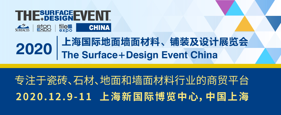 SURFACES China 2020将于2020年12月9-11日,在上海新国际博览中心举办,中国及全球的瓷砖、石材、地板、地毯、弹性地材、墙面材料、铺装及保养领先企业等将再度汇聚一堂。无论是地面及墙面材料行业的生产制造商、经销商、进出口贸易商,还是建筑师、设计师,工程商、房地产开发商,都可以在SURFACES China 2020精心打造的综合展示平台及同期活动中,获得满意观展体验,拓展业务联系,促成商机。更多精彩内容,请登录www.surfaceschina.com